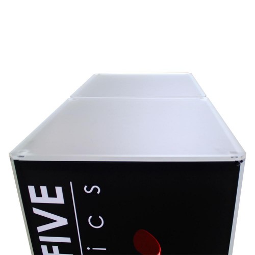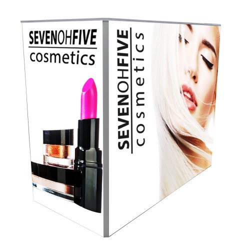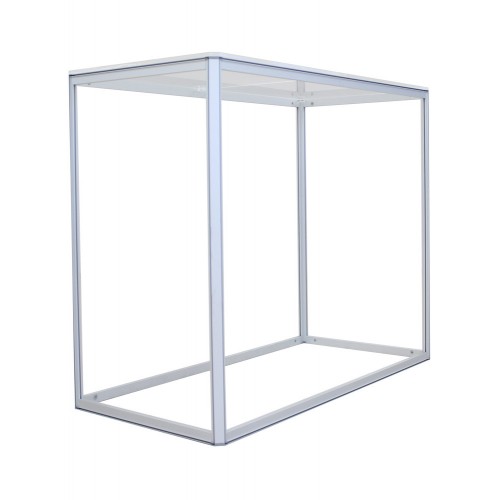 Big Sky Counter is part of the Resort Extrusion family—aluminum frames for Silicone-Edge Graphics (SEG). Custom-made on the premises, Big Sky Counter comes in varied sizes. Big Sky Counter accepts four individual custom fabric graphics, excluding top and bottom. Insert graphics after frame is constructed by tilting it on its side.
