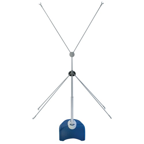 The Zephyr Outdoor Banner Stand supports 2' x 5' to 3' x 6' banners with grommets. The base can be filled with water to add extra weight for outdoor display. A double sided option is available for back to back banner display.