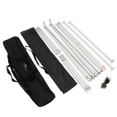 Sturdy and lightweight aluminum frame for outdoor display. Banners easily mount to both sides of the frame with bungee cords.